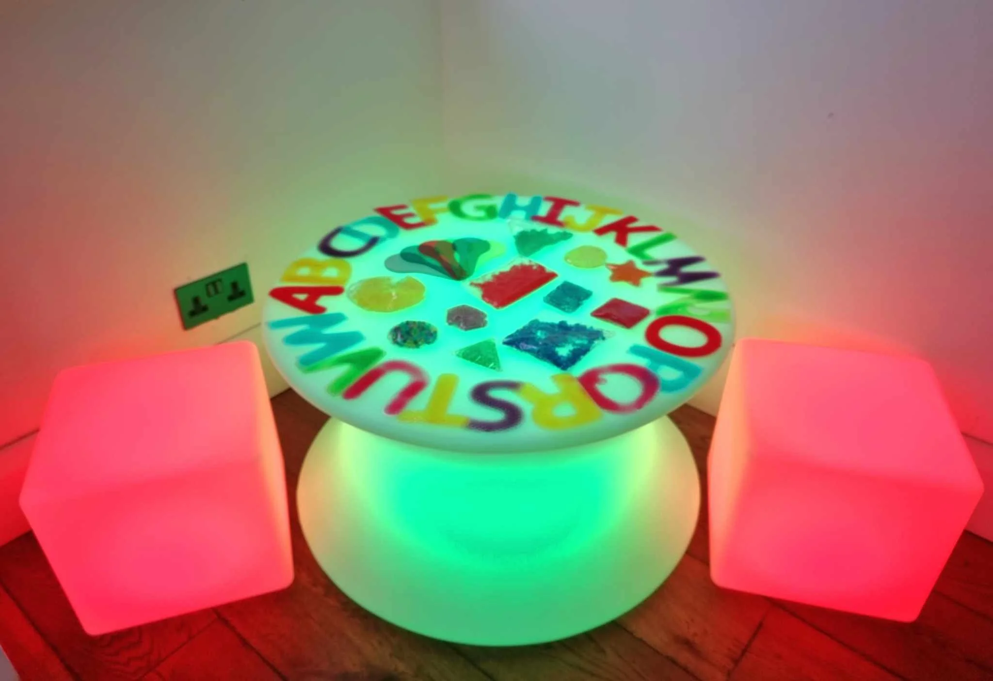 Glow table with stools and glow equipment and toys